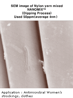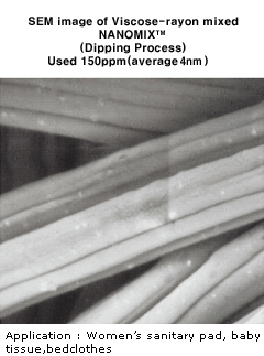 平均7nm颗粒的纳米级均衡分布的纤维用银产品。 |