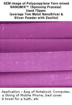 Nylon糸にナノシルパー陥沈処理されたSEM Image |