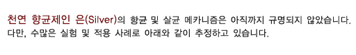 대사를 저해하는 것으로 추정하고 있으며, 그 증거로는 은의 양이온( )이 균체 내부로 전이